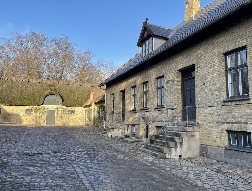 Avlsgården ligger i passende afstand fra den imponerende hovedbygning – som det passede sig dengang – og rummer i dag sin helt egen ro og værdighed.
